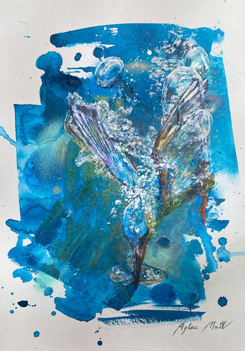 Varnished mixed media sketch on archival water color paper.